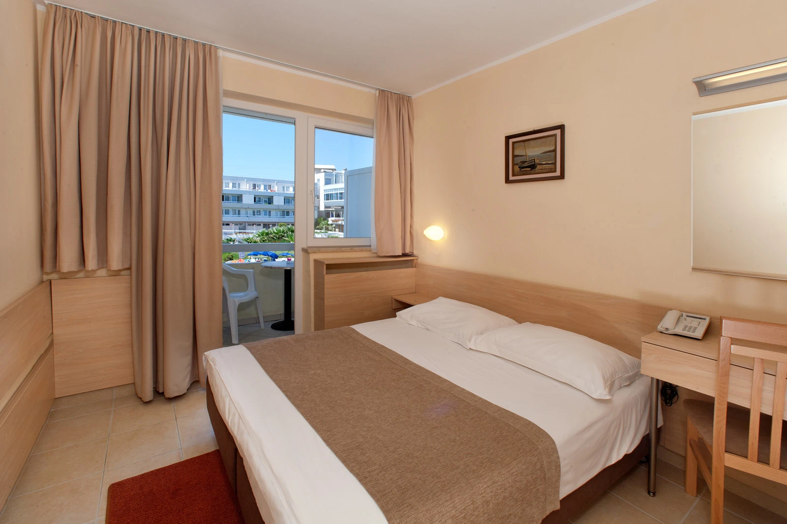 Ovaj hotel, smešten na svega 50 metara od raznovrsne obale sa šljunkovitim, stenovitim i betoniranim delovima, nudi udoban smeštaj kroz Economy i Classic sobe. Sve jedinice su opremljene TV-om i telefonom, dok Classic sobe poseduju i balkon (neke sa delimičnim pogledom na more). Važno je napomenuti da sobe nisu klimatizovane, a dečiji krevetac je dostupan besplatno na upit. Gosti mogu birati između usluge polupansiona ili punog pansiona na bazi švedskog stola, dok se piće dodatno naplaćuje.